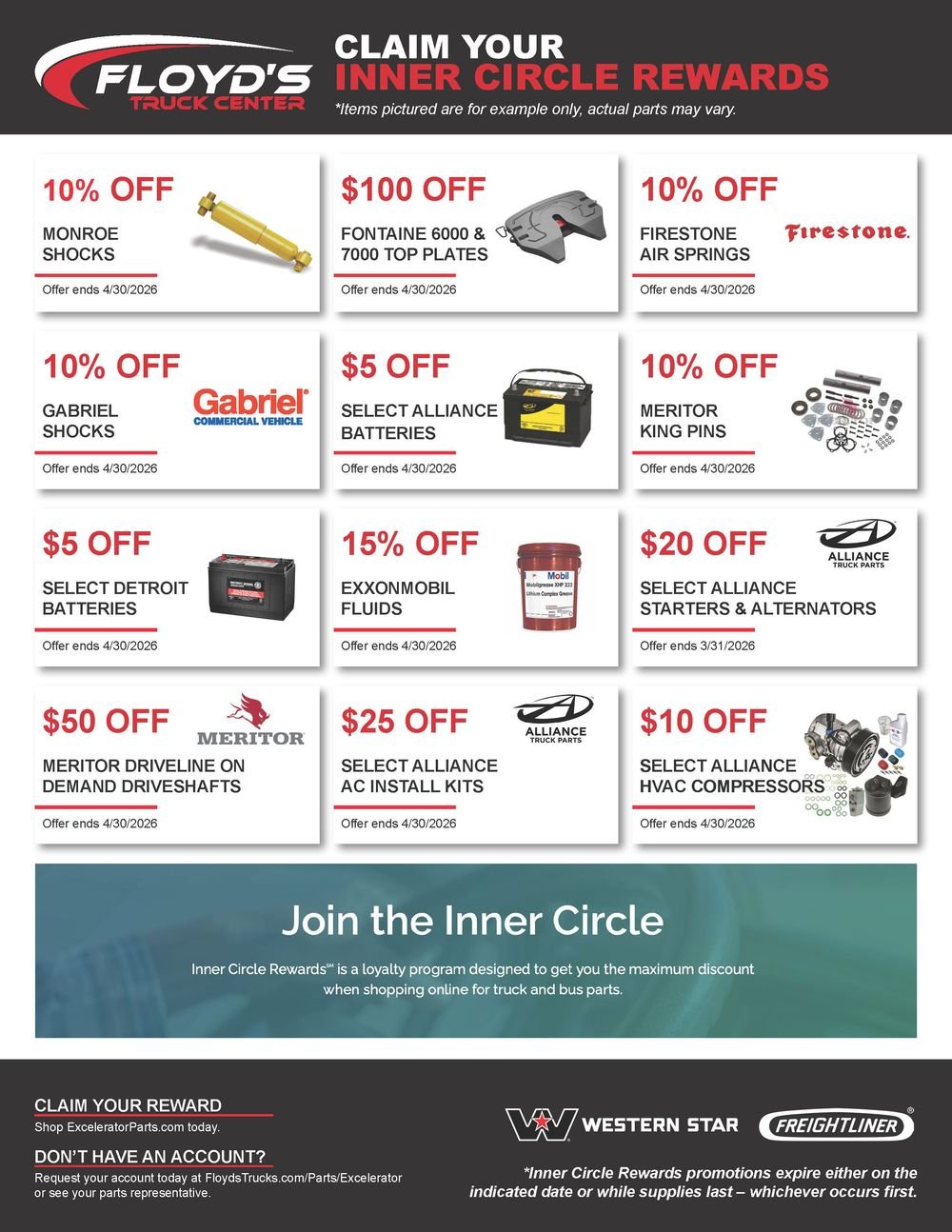 Offers valid through 4/30/2026 or while supplies last, whichever comes first. Prices may vary by location. Images are for illustrative purposes only; actual parts may vary.
